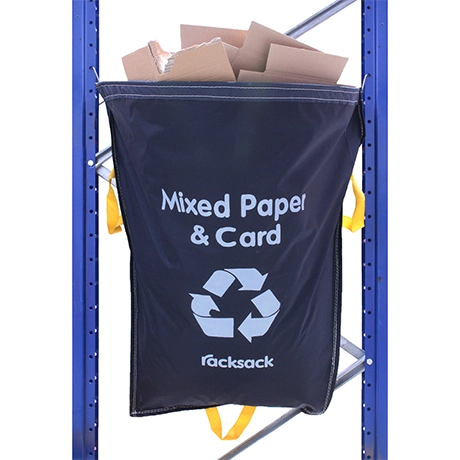 Racksack, ger en smart återvinning direkt på ställaget. Frigör golvyta och skapa ordning där avfallet faktiskt uppstår. Denna återvinningssäck hängs direkt på pallställ eller hyllställ och sparar värdefull golvyta i lagret. Monteras på några sekunder med medföljande S krokar.
